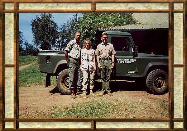 v.l. Jörg, Petra Reinecke und Bongo Woodly Senjor Game Warden Mount Kenya National Park