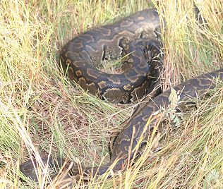 Felsenpythons (python sebae) im Bush von Kenya und Tansania